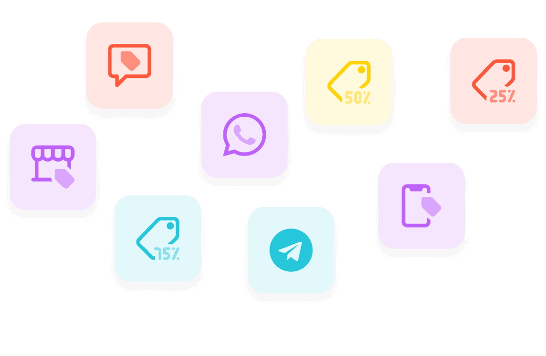 Easily use bot with your favorite messengers and get many discounts every day in any time.